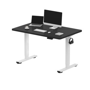 FLEXISPOT E2 IN 48" Comes with 3 different colored chipboard tops, (white/black/maple) and Frame offers 2 color (Black & White) is Sleek and sturdy, this 48″‑wide desk combines a durable chipboard top with a matte black steel frame. Electric dual‑motor lift adjusts height smoothly with one-touch controls and 4 memory presets. It supports up to ~187 lb, comes UL-certified with overload/overheat/overcurrent safeguards, and includes handy hooks for your gear. Ideal for boosting ergonomics and reducing sedentary fatigue—all in a clean, minimalist design.