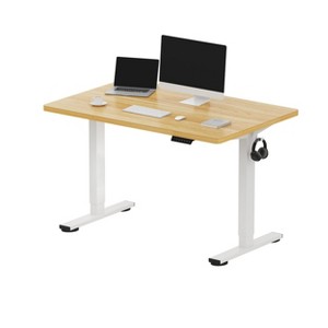FLEXISPOT E2 IN 48" Comes with 3 different colored chipboard tops, (white/black/maple) and Frame offers 2 color (Black & White) is Sleek and sturdy, this 48″‑wide desk combines a durable chipboard top with a matte black steel frame. Electric dual‑motor lift adjusts height smoothly with one-touch controls and 4 memory presets. It supports up to ~187 lb, comes UL-certified with overload/overheat/overcurrent safeguards, and includes handy hooks for your gear. Ideal for boosting ergonomics and reducing sedentary fatigue—all in a clean, minimalist design.