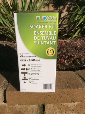The Flexon 20-Piece Soaker Hose Kit is an efficient and eco-friendly solution for watering your garden and landscaping projects. This complete kit includes a 100-foot soaker hose and 20 connectors, providing everything you need for easy installation and optimal watering. The non-clogging, porous design delivers consistent moisture directly to plant roots, reducing water waste and promoting healthy growth. Made from durable materials, it is built to withstand outdoor conditions, making it perfect for flower beds, vegetable gardens, and lawns. Upgrade your irrigation system today!