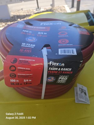 The Flexon Farm and Ranch Garden Hoses are built for heavy-duty performance in demanding outdoor environments. These hoses are crafted with durable, kink-resistant materials to ensure a steady water flow for farm, ranch, and large-area watering needs. Its reinforced couplings provide a secure, leak-proof connection, while the high-visibility red color makes it easy to spot. Perfect for watering livestock, cleaning equipment, and heavy-duty tasks, this rugged, long-lasting hose is a must-have for any farm or ranch. Upgrade your outdoor tools today!