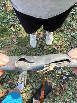 Attached hose and tirned water on and noticed bubbling in hose in several areas went out to use this morning and bubble had split open!
