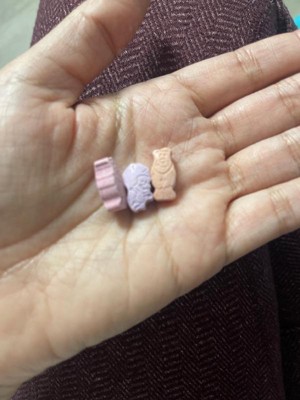 sorbitol, sodium ascorbate, maltodextrin, mannitol, fructose++, ascorbic acid, ferrous sulfate, corn starch, vitamin e acetate, stearic acid, modified food starch, citric acid; less than 2% of: beta-carotene, biotin, color (annatto extract [seed], red beet juice, red sweet potato juice, spirulina extract, turmeric oleoresin), d-calcium pantothenate, folic acid, gelatin, lactic acid, magnesium stearate, natural flavor, niacinamide, potassium lodide, pyridoxine hydrochloride, riboflavin, silicon dioxide, sucralose, thiamine mononitrate, vitamin a acetate,vitamin b₁2 (cyanocobalamin), vitamin d. (cholecalciferol), zinc oxide. ++adds a trivial amount of sugar