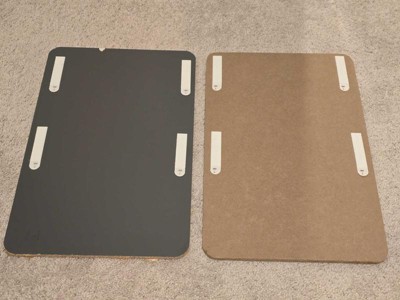 I ordered this twice, about a month or so apart. The items I got were very different in terms of material. One had a really fuzzy back that didn't adhere well to my command strips (I had to use super glue/staples to keep it secure). The second pack had a nice, smooth gray back that worked well with my command strips. Similarly, from the side it looks like the cork itself is a very different material between them. But overall, they still did their job and hang on the wall as expected. Note I did not use the hanging stickies they came with, and instead opted for heavy duty command strips since I was hanging heavy enamel pins up.