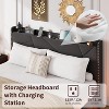 Floating Bed Frame with Charging Station, Upholstered Platform Beds with Storage Headboard