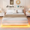 Floating Bed Frame with Charging Station, Upholstered Platform Beds with Storage Headboard