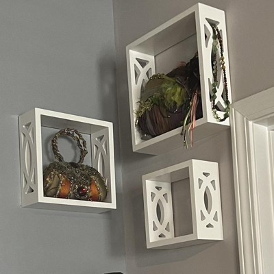 Floating Shelves - Open Cube Wall Shelf Set with Hidden Brackets, 3 Sizes to Display Décor, Photos, More- Hardware Included by Lavish Home White
