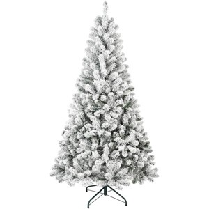 Flocked Artificial Christmas Tree with PVC Branches, Rounded Top, Fireproof Material, Hinged Foldable Design with Sturdy Pole and Base - 1 of 4