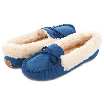 Easy to slip on yet made to encapsulate the foot in coziness, the memory foam insole pairs perfectly with the durable rubber outsole plus microsuede and lux faux fur materials. Wear them around the house, while running errands, in the yard, all the time! Crafted to perfection, this moccasin-style is the epitome of a lounge wardrobe must-have.