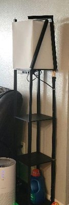 Simple Designs 62.5" Three Shelf Floor Lamp with 2 USB Ports and Charging Outlet with Feit LED Includes LED Light Bulb Tan