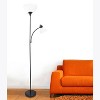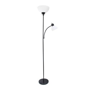 A charming, inexpensive, and practical 71.5" floor lamp to meet your basic lighting needs. This simple mother/daughter floor lamp with reading light features a painted finish and plastic white shades. Perfect for living room, bedroom, office, kids room, or college dorm.
