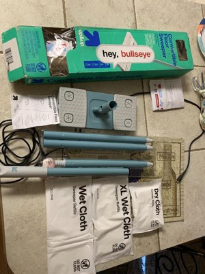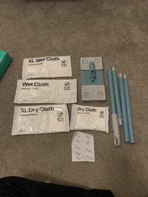 I am ecstatic to find a product that cleans my floors this effortlessly. The wet clothes clean in minutes. Even stickier substances come up easily with a few extra swipes. I was able to get up a lot more dirt that my previous sweeper could not. The scent of the wet clothes is also surprisingly pleasant. The floor sweeper does a great job of getting into corners. The dry clothes can be used to get dust off the walls. The sweeper as extends to a larger size to cover more service area. I cleaned my entire house in less than a fourth of the time I normally do with this versatile product & it doesn’t take much room to store. It would be nice to have a resealable bag for the wet clothes.