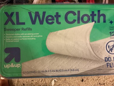 Clean with confidence using these 12-Count XL Wet Cloth Sweeper Refills from up&up™. This pack of 12 XL wet cloths is made with a fresh scent and textured surface for scrubbing power. These wet cloths quickly and easily remove dust and grime, and they can be used on sealed surfaces including finished wood.