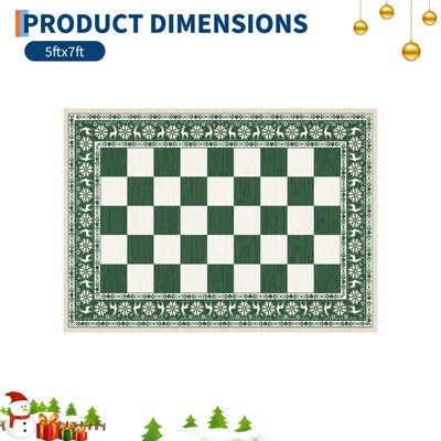 Flora Area Rug 5x7 Washable Botanical Flower Living Room Rugs Non Slip Soft Low Pile Thin Indoor Bedroom Floor Carpet, Green