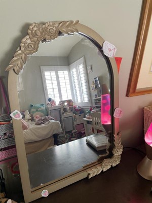 I am completely obsessed with my Cloud Island Floral Arch Decorative Wall Mirror With 6 Flowers. This mirror is gorgeous, and pictures don't do it justice. It's large, but not super heavy, and it is very well made. It is easy to hang and comes with screws and wall anchors to hang it with. I love that it is shatterproof, especially since I have young kids at home. I have mine hanging in my hallway, but it would look great hanging just about anywhere, and in a wide range of decors.