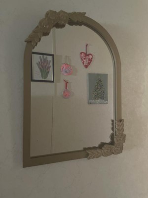 This mirror is super cute. It's perfect for a nursery or little girls room, but it's just a little smaller than I expected. Not sure if I will keep it or return just because of size. It's a really beautiful mirror though and the color is nice - it's not a bright gold.