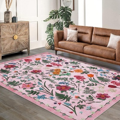 Floral Area Rug - Rustic Natural Design Machine Washable Non-Slip Rug, Soft Bohemian Rug Pink 8*10ft244*305cm