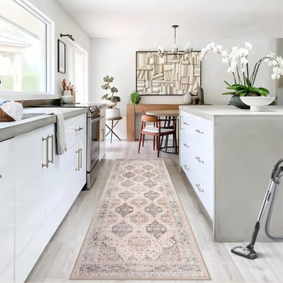 2'x6' Runner Rug Boho Floral Non-Slip Low Pile Small Throw Rugs for Entryway Kitchen Front Door Indoor Entrance Entry Kids Room Beige