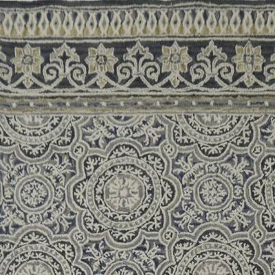 A: This rug is very Blue with an off white to white background. I expected it to be gray too. I kept it because the. Lie happened to match but found it to be a. Awkward color to match. Can't find pillows, curtains, etc in the same shade of blue.