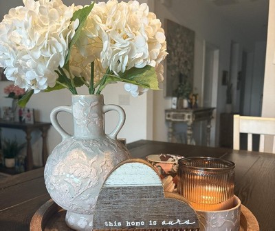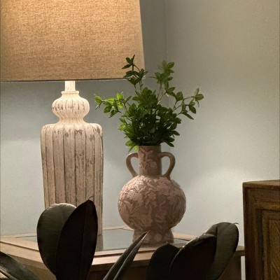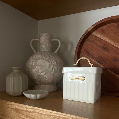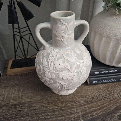 Beautifully showcase your flower arrangements with this Floral Ceramic Vase from Threshold™ designed with Studio McGee. Made of ceramic, this beige vase is designed in a bottle shape with allover raised floral patterns for vintage charm. This watertight vase is ideal for placement on a tabletop, alone or paired with other vases for a cohesive display.