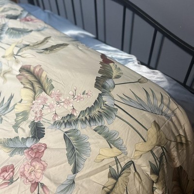 Floral Cotton Comforter Set – 100% Cotton Bedding with Elegant Botanical Print, Soft Lightweight All Season Quilt, King/Queen Blue-02 Queen