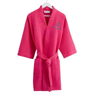 Personalization Mall Floral Embroidered Waffle Weave Robe, Pink
