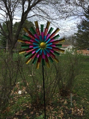 [This review was collected as part of a promotion.] My Alpine Corporation Prismatic Flower Kinetic Wind Spinner Stake looks really nice out in my yard! It was super simple to put together. I only had to attach the 3 pieces of the stake together and the 3 spinner pieces and a spacer. It couldn’t of been any easier! This looks absolutely amazing up in my yard! It has been really windy and it is spinning nicely!