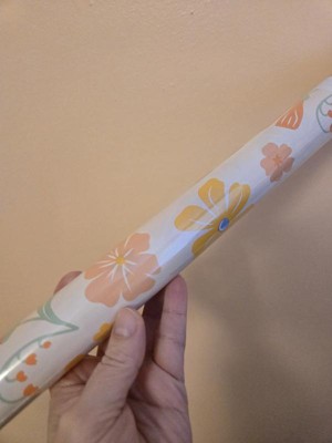 A: The wrapping paper features a beautiful floral design on a cream background.