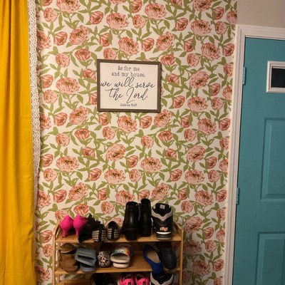 Any bare wall can get an instant refresh when you use the Floral Peel & Stick Wallpaper from Opalhouse™. A sweet pink and green floral pattern blooms amidst the off-white background of this stain-resistant wallpaper to give any space a delightfully charming look with just the right touch of artistic flair. This wallpaper will make a beautiful statement on a living room accent wall, a narrow corner in a home office or even a stairwell for a subtle splash. The peel-and-stick design makes it easy to apply to a range of surfaces — simply peel, stick and smooth out — and it's repositionable to switch things up to your liking.