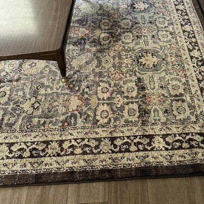 This rug is gorgeous! I got this Threshold Floral Persian Area Rug in the 5x7 foot size. Love the multi color details of this Persian style rug. The color way is a mix of black/dark gray on the edges and border with a mix of muted pastel teal, light blue light pink and creams. It’s got a good color tone that adds color to offset the neutral tones of my home decor and design aesthetics. It is everything I hoped it’d be when I ordered it. I love the detailed design of the rug and the abstract design of the rug’s print. The construction of the rug makes it feel soft and plush on the feet. It’s also easy to vacuum. The quality of the rug is great and doesn’t shed. I didn’t notice much of an odor while unrolling the rug. I highly recommend this rug if you’re looking to elevate your home with a rug that portrays a luxurious and high end look.