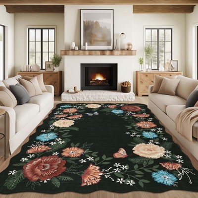 Floral Rug Modern Washable Living Room Rug Non Shedding Stain Resistant Farmhouse Soft Foldable Carpet, 10'x13'