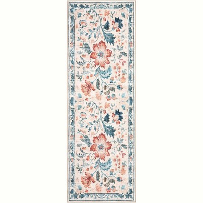 Floral Runner Rug, Soft Ultra-Thin Low Pile Carpet with Non-Slip backing, for Kitchen, Hallway, Bedroom—Indoor Flower Rug Runner,2*6ft Beige