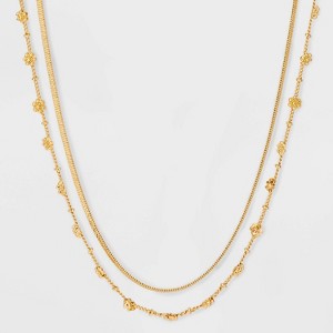 Floral Stationed Layered Necklace - Universal Thread™ Gold: Multi-Strand Chain, Lobster Claw Clasp, 18" Length