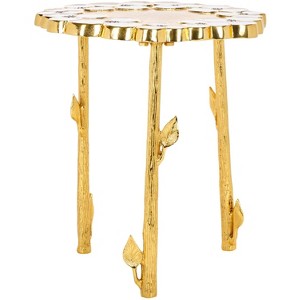 Make a style statement with our eye-catching and eclectic Florence accent table. The striking tabletop is enriched with beautiful florals to attain a unique, organic shape. Masterfully handcrafted, the tabletop serves as the perfect complement to its textured, petaled legs. Inspired by nature with intricate detailing and textures, our accent table is ready to make a bold statement. It is completed with a polished gold finish to bring a touch of glam and sophistication to your home.