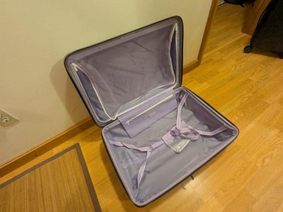 [This review was collected as part of a promotion.] This suitcase is great! Has a very large capacity for packing with convenient zippers and straps. The suitcase itself is lightweight and rolls on the ground with ease making it so nice to navigate the airport. It’s made of a hard material that seems like it will hold up as well as other hardside luggage’s. I love the color. I’m very happy with this suitcase!