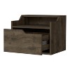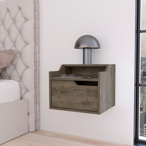 "Streamline your bedroom with the Florence Floating Nightstand. Elegantly designed for modern homes, this wall-mounted piece offers a sleek single drawer (12.3"" W x 4.7""H x 10.1""D) for discreet storage, complemented by a two-tiered top shelf (14.5""W x 12.1""D). Whether showcasing decor or keeping essentials at hand, it's a blend of utility and style. Choose chic macadamia, white, dark brown, black or light gray finishes in manufactured wood to elevate your space. Easy-to-mount and brilliantly versatile
