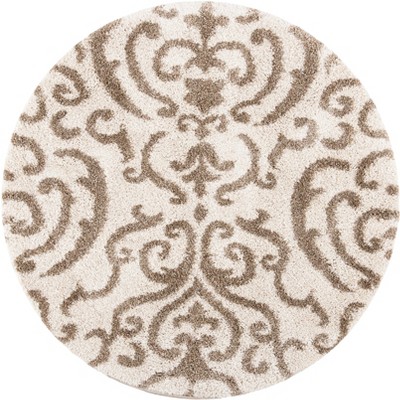 Florida Shag SG455 Power Loomed Indoor Area Rug - Ivory/Black - 6'7" round - Safavieh.