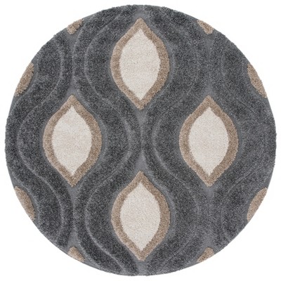 Florida Shag SG460 Power Loomed Indoor Area Rug - Grey/Beige - 6'7" Round - Safavieh
