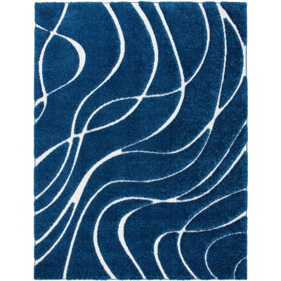 Florida Shag SG461 Power Loomed Indoor Area Rug - Cream/Light Blue - 9'x12' - Safavieh