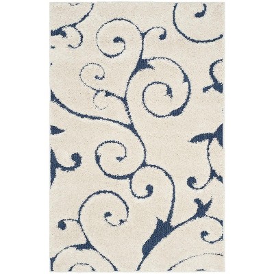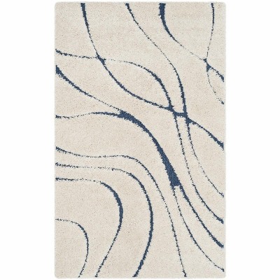 Florida Shag SG468 Power Loomed Indoor Accent Rug - Cream/Blue - 3'3"x5'3" - Safavieh