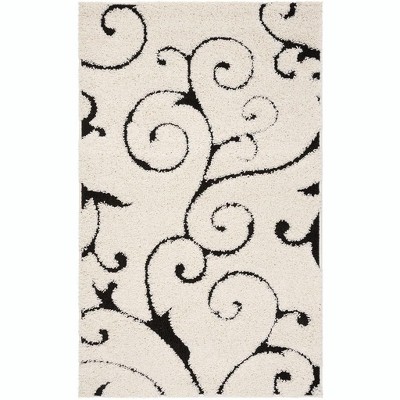 Florida Shag SG471 Power Loomed Indoor Accent Rug - Ivory/Black - 4'x6' - Safavieh