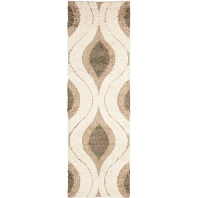 Florida Shag SG471 Power Loomed Indoor Runner Rug - Cream/Beige - 2'3"x17' - Safavieh