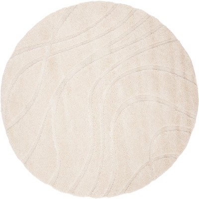 Florida Shag SG472 Power Loomed Indoor Accent Rug - Creme/Creme - 4' Round - Safavieh