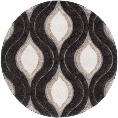 Florida Shag SG473 Power Loomed Indoor Area Rug - Brown/Ivory - 6'7" Round - Safavieh