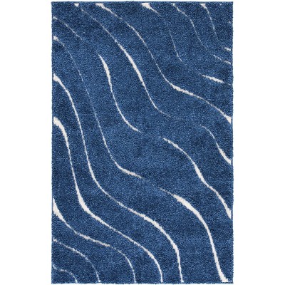 Florida Shag SG473 Power Loomed Indoor Accent Rug - Black/Ivory - 4'x6' - Safavieh