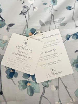 - LEVTEX FLORINA : The Florina comforter collection is an array of delicate blossoms in soothing shades of teal, white and grey. The set consists of a comforter and matching pillow case.