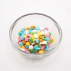 Ingredients: Sugar, Rice Flour, Partially Hydrogenated Vegetable oil (Cottonseed and/or Soybean), Corn Starch, Cellulose Gum, Carrageenan, Soy Lecithin, Titanium Dioxide, Gum Tragacanth, FD&C Yellow #5, FD&C Yellow #6, FD&C Red #3, FD&C Blue #1, and Artificial Flavor