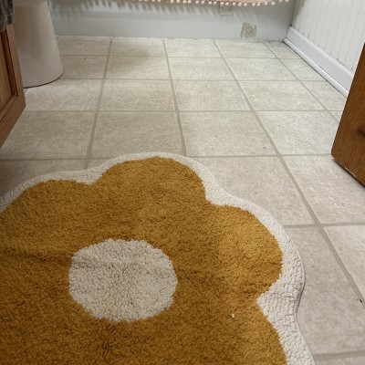 - Flower-shaped bath rug in yellow and white