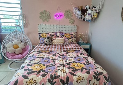 I recently ordered this comforter set for my daughter’s bedroom, and we couldn’t be happier with it! The floral pattern is vibrant, cheerful, and brings such a fun, fresh vibe to the room. The reverse plaid side is equally cute and gives us the option to switch things up whenever we want a new look without buying a new set. It’s like having two comforters in one, which is such a bonus. The material is soft, breathable, and cozy — perfect for all seasons. It’s not too thick, but still warm enough to keep her comfortable throughout the night. The stitching and overall quality feel really durable.I have already washed it a couple of times and it came out looking just as good as new, with no fading or fraying. Overall, this comforter set is a great buy for any kid’s room. It’s stylish, functional, and brings a joyful pop of color. Highly recommend it for anyone looking to refresh a space with something fun and cozy!