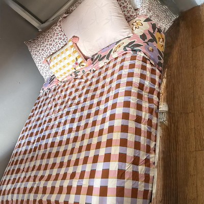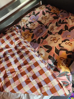 I have a twin bed in my guest room so I was excited to test this comforter out. It is really cute and so colorful! It definitely brightens up the room. I also love that it has different patterns on both sides so you can switch it up. I prefer the plaid but my girlfriend prefers the florals, so we will definitely display both sides. Both are bright and match the wall color of our guest room. The comforter is soft and warm too!