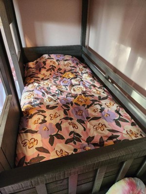 We bought this comforter and pillow sham set for the adorable floral pattern, not so much a fan of the plaid… so we just keep it on the one side. But I love the idea of a reversible comforter, two for the price of one! The fabric is thinner and scratchier than I would like, but it doesn’t bother my daughter. The stuffing is light so it’s not super warm, but my daughter thinks it’s perfect!